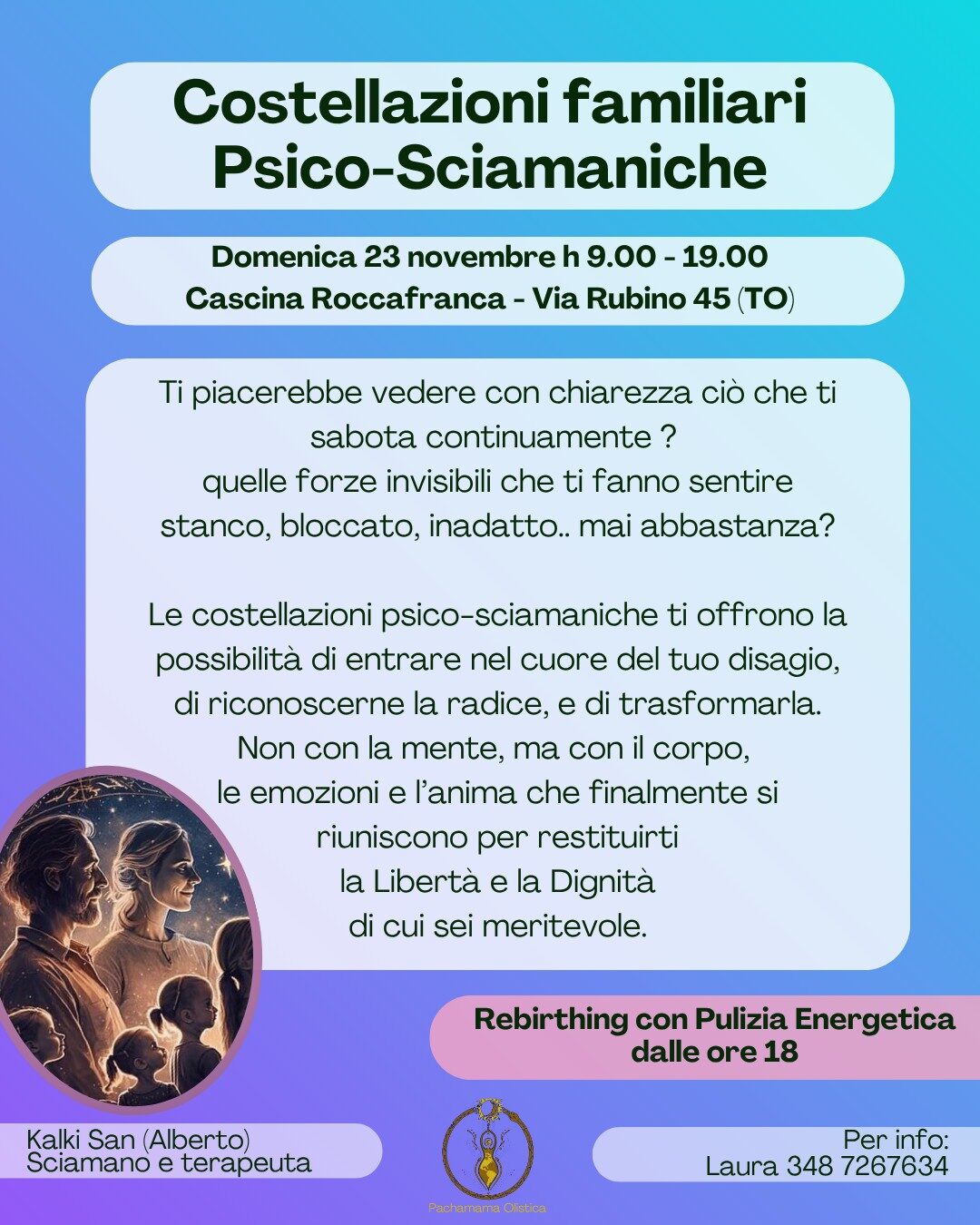 il Sacro Maschile la forza di costruire se stessi Un percorso da percorrere con umiltà, presenza.. e sopra ogni cosa, con spirito di fratellanza. In questo percorso proviamo con molta cura e rispetto dei tempi di ognuno, a scardinare le credenze che ci limitano nella nostra espressione. Viaggeremo insieme attraverso ricordi della nostra storia personale, importante per comprendere come eventuali ferite del passato stiano condizionando il nostro presente. Comprenderemo come poter rielaborare esperienze passate, anche dolorose, e trasformarle in risorse. Useremo mappe psichiche e sciamaniche per "Conoscerci" nella nostra natura più intima. quella che spesso è stata repressa per paura.. di non piacere, di essere sbagliati, di essere "troppo".. Apprenderemo tecniche e strumenti per poter svegliare la nostra parte più saggia, più mistica, sciamanica! quella che sa vedere "oltre" alle illusioni materiche perché è "sveglia", "connessa". Per far questo cominceremo a studiare il mondo dei sogni capiremo come poter attenzionare i messaggi che questi ci mandano, faremo approfondimenti e riflessioni su antiche tecniche di espansione della coscienza, per aprirci con rispetto al mistero che custodisce e guida la Vita. Lo faremo incontrandoci inizialmente su zoom, una volta ogni due settimane, un buon ritmo per poter lasciare che ciò che è emerso durante il nostro incontro venga sedimentato ed elaborato dentro di noi. e ci incontreremo in Presenza, due volte, a metà e a fine percorso. per poter condividere insieme, attorno ad un fuoco, delle esperienze che saranno impresse nella nostra anima, e che saranno semini che dentro di noi cresceranno per portare ad ognuno i frutti che gli spettano. non servono requisiti precedenti, diplomi, lauree, percorsi psicologici o corsi di yoga, solo la voglia di mettersi in gioco, assumendosi il rischio di perdere l'equilibrio (che spesso è già precario), per trovarne uno nuovo e più "radicato". son felice di accogliere qualsiasi uomo, con barba o senza :) che abbia voglia di aprirsi, imparare, condividere. ciò che ritengo essere la ricetta migliore per una Ricca Vita ;) Buon Cammino Alberto per info e prenotazioni: Alberto Uomo Medicina e Terapeuta Sciamanico 3490085788 alberto.pachamamaolistica@gmail.com per approfondimenti: https://www.pachamamaolistica.it/sacro-maschile/ telegram: http://t.me/pachamamaolistica